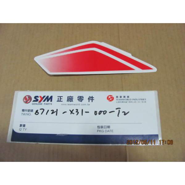 Description The spare r.fr.cover stripe a part number 87121-X31-000-T2 is a genuine SYM part which means it is exactly the same as the one mounted at the factory when the vehicle was new