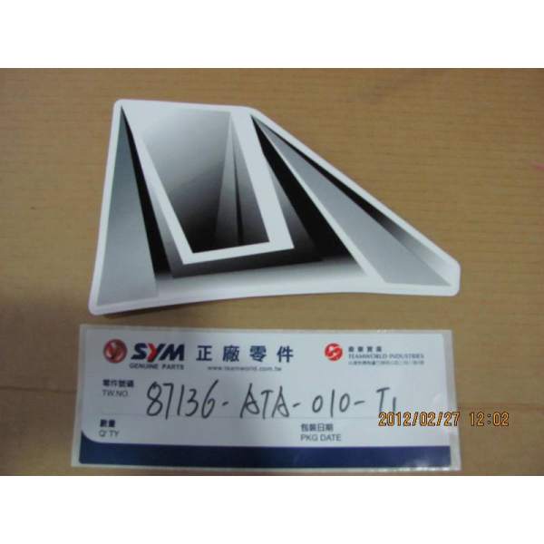 Description The spare autocollant gauche face avant part number 87136-ATA-010-T1 is a genuine SYM part which means it is exactly the same as the one mounted at the factory when the vehicle was new