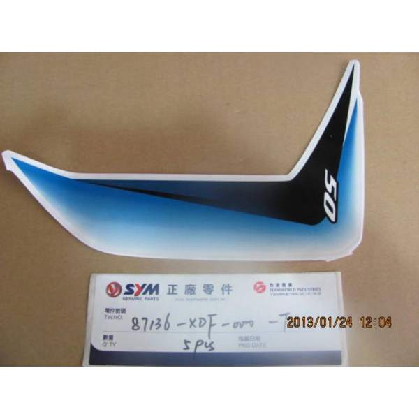 Description The spare adhesif gauche 50 bleu part number 87136-XDF-000-T2 is a genuine SYM part which means it is exactly the same as the one mounted at the factory when the vehicle was new