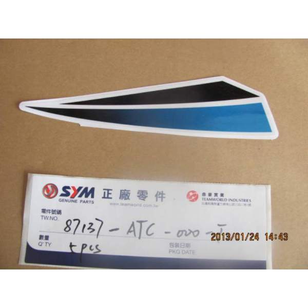 Description The spare adhesif droit bleu g-boue part number 87137-ATC-000-T2 is a genuine SYM part which means it is exactly the same as the one mounted at the factory when the vehicle was new