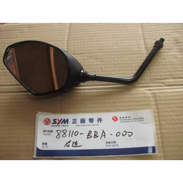 Description The spare r.back mirror part number 88110-BBA-000 is a genuine SYM part which means it is exactly the same as the one mounted at the factory when the vehicle was new