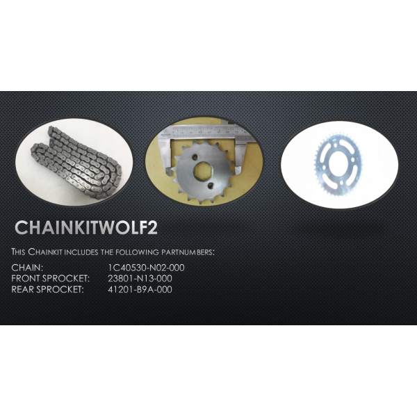 Description The spare chainkit wolf125 pd12a1-6 part number CHAINKITWOLF2 is a genuine SYM part which means it is exactly the same as the one mounted at the factory when the vehicle was new